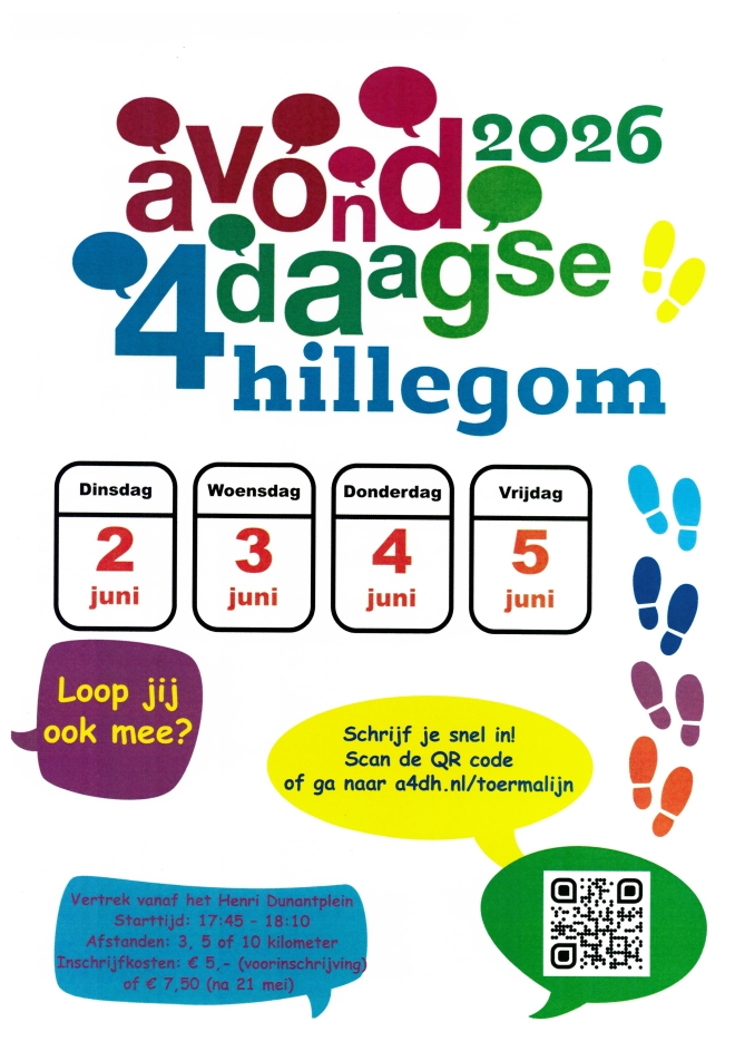 Op dinsdag 2 juni t/m vrijdag 5 juni wordt de avond 4daagse weer gelopen.