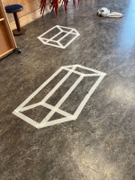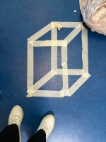 Met rekenen zijn we aan de slag gegaan met het maken van een 3d- kubus met tape en hebben we een ladder met zijn schaduw getekend.